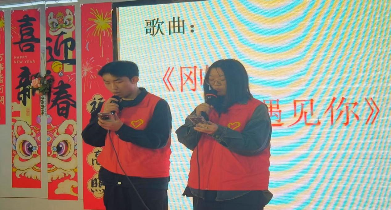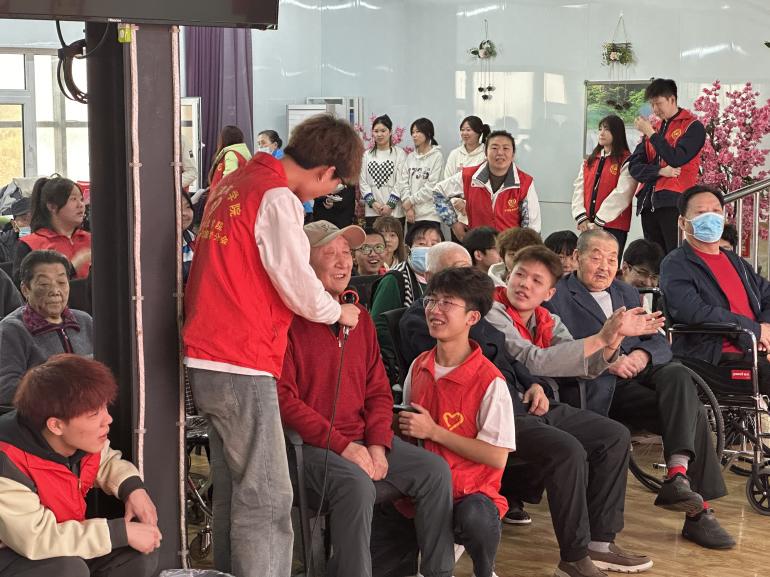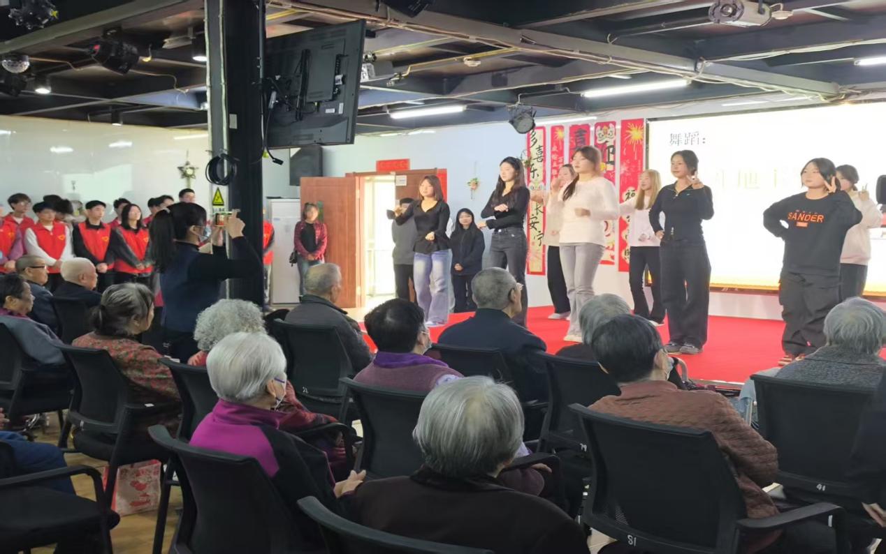 2025年3月22日上午7时30分,志愿者们、红色宣讲团及公寓委员会成员准时在教学楼前集合签到。随后,队伍整齐有序地前往鑫夕阳养老院,活动正式拉开帷幕。主持人以一段热情洋溢、饱含深情的开场白,迅速拉近了与老人们的距离,为整个活动奠定了温馨的基调。节目内容融合经典与创新,既有红色基因的传承,又展现了青春活力的绽放。通过音乐、语言、表演等多种形式,每个节目都架起了代际沟通的桥梁,充分彰显了“情暖夕阳,青春同行”的主题。