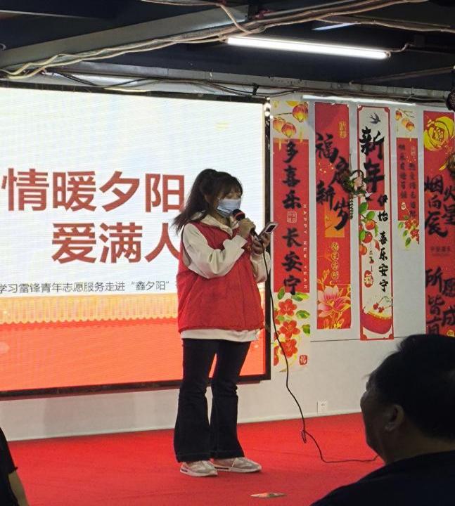 随后,志愿者们齐声合唱歌曲《学习雷锋好榜样》,用嘹亮的歌声弘扬雷锋精神,传递“助人为乐、关爱社会”的价值观。歌曲的感染力让老人们深切感受到新时代青年的热忱与担当,生动诠释了“老幼同心,美德共传”的深刻内涵,为活动增添了浓厚的情感共鸣。